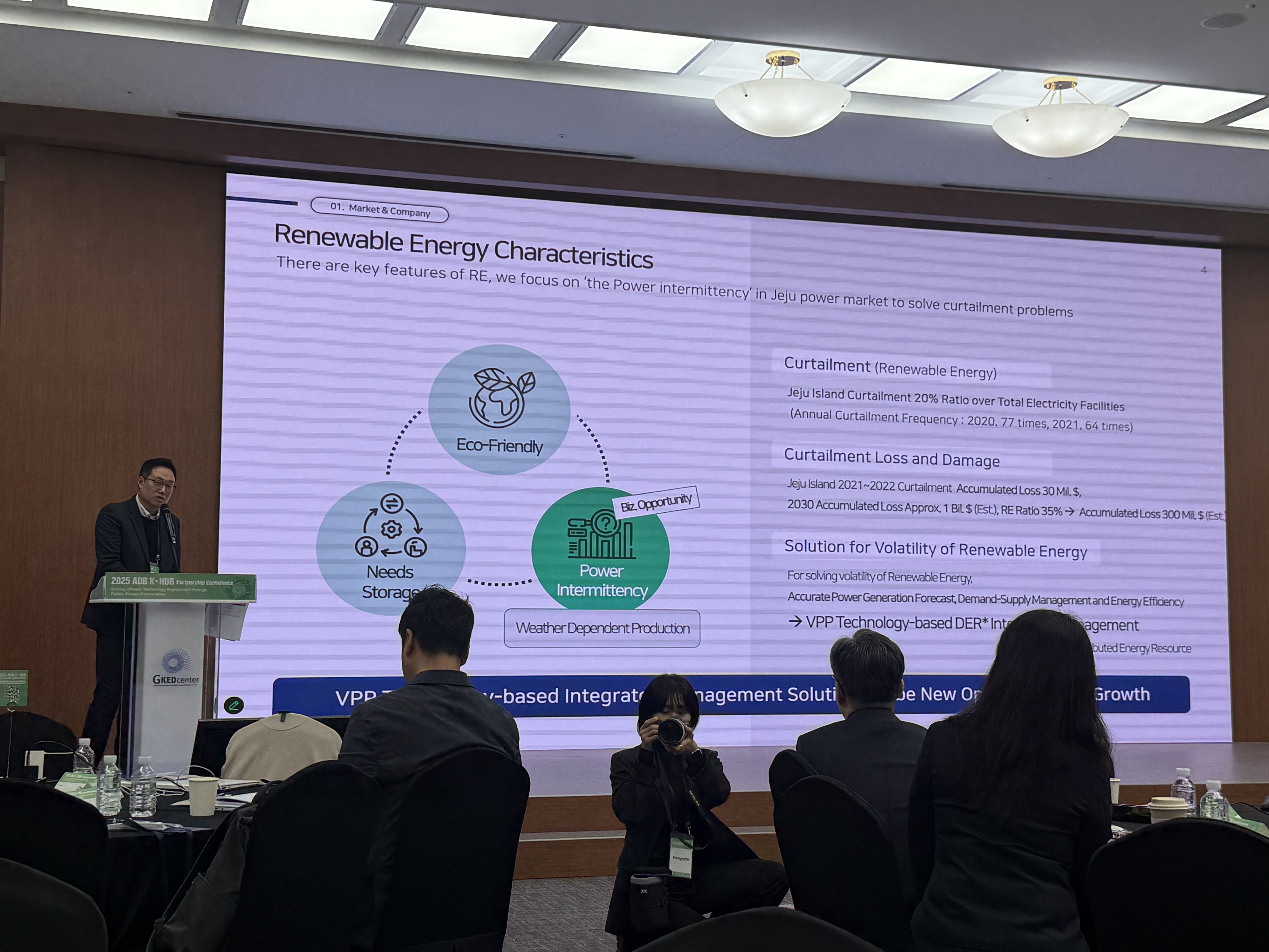 브이피피랩이 지난 11월 5일, 서울 동대문구 글로벌지식협력단지에서 개최된 [ADB K-Hub 파트너십 콘퍼런스] 에서 VPP 솔루션과 분산에너지 비즈니스 모델을 소개했습니다.